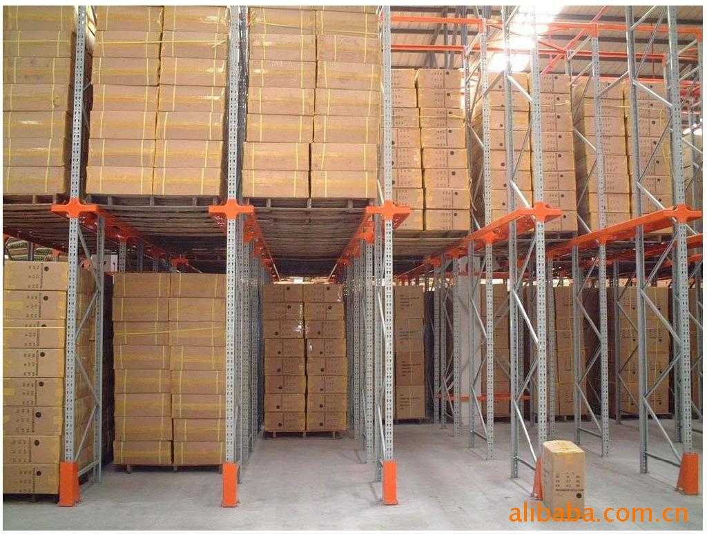 貫通式貨架又稱通廊式貨架或駛?cè)胧截浖堋X炌ㄊ截浖芸晒┎孳嚕ɑ驇ж洸娴臒o人搬運車)駛?cè)胪ǖ来嫒∝浳,適用于品種少,批量大類型的貨物儲存。貫通式貨架除了靠近通道的貨位,由于叉車需要進入貨架內(nèi)部存取貨物,通常單面取貨建議不超過7個貨位深度。為提高叉車運行速度,可根據(jù)實際需要選擇配置導(dǎo)向軌道,與橫梁式貨架相比,貫通式貨架(駛?cè)胧截浖埽┑膸炜臻g利用率可提高30%以上,貫通式貨架(駛?cè)胧截浖埽⿵V泛應(yīng)用于批發(fā)、冷庫及食品、煙草行業(yè)。