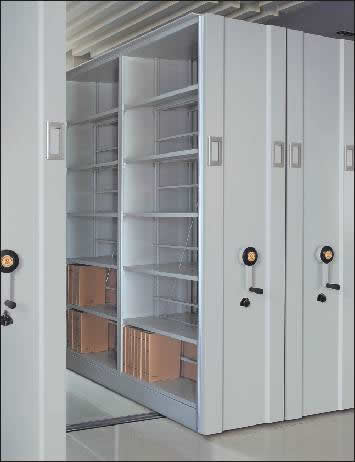 該樣式密集架適用于要求承重較大庫(kù)房,因?yàn)槊芗芗荏w中間增加了隔板,被稱為“半封閉”或“臺(tái)灣式”手動(dòng)密集架,其承重性能優(yōu)于前兩種密集架。