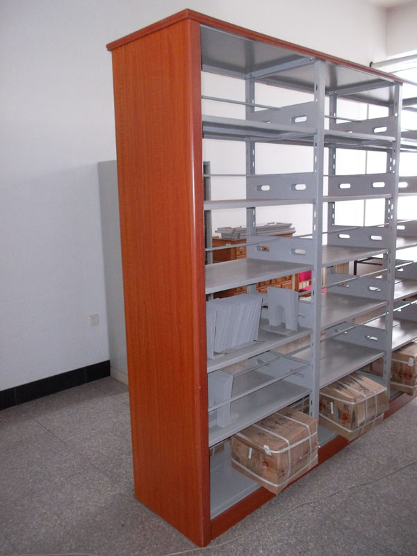 木護板書架是圖書館擺放書籍最常用的書架類型之一,目前主要分為單面書架和雙面書架兩種,兩者之間并沒有太大的區(qū)別,雙面書架相較于單面書架只是寬度較大。比如上圖所展示的這款書架,它長大概2100mm,高大概2000mm,隔板與隔板相間長為900mm,高為280mm,這類尺寸的書架適用范圍較廣,適合大部分的圖書館。通常來說,圖書館的面積都較大,適合擺放多排書架,如第二張圖所展示的圖書館書架,這類型的書架分為主副兩個架子,主架較高,高為2m,寬為1m,而副架則更加低矮小巧,高為0。9m,寬為0。35m,由于它較高,所以它的適用范圍相較于上一款更為有限,不使用與較為低矮的圖書館內(nèi)。